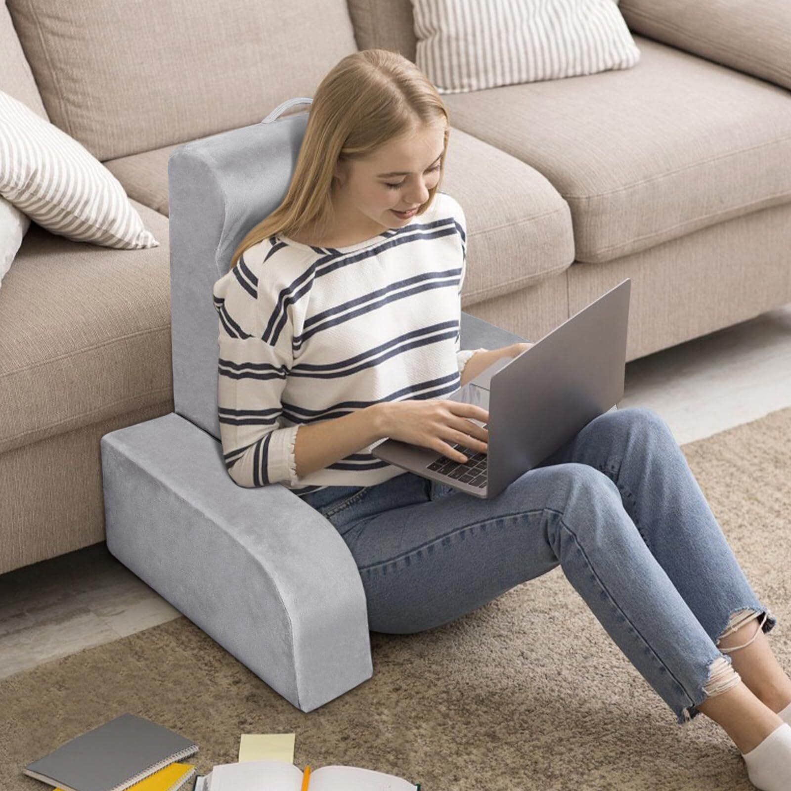 【多機能読書クッション】読書枕は、壁、ベッド、ソファにもたれて、本を読んだっり、テレビを見たりするときに使用するのに適しています、男女兼用のデザインでさまざまな場面で活躍します。うつ伏せになってスマホを見て丁度良い角度です。 疲労を大幅に軽減し、快適性を向上させます