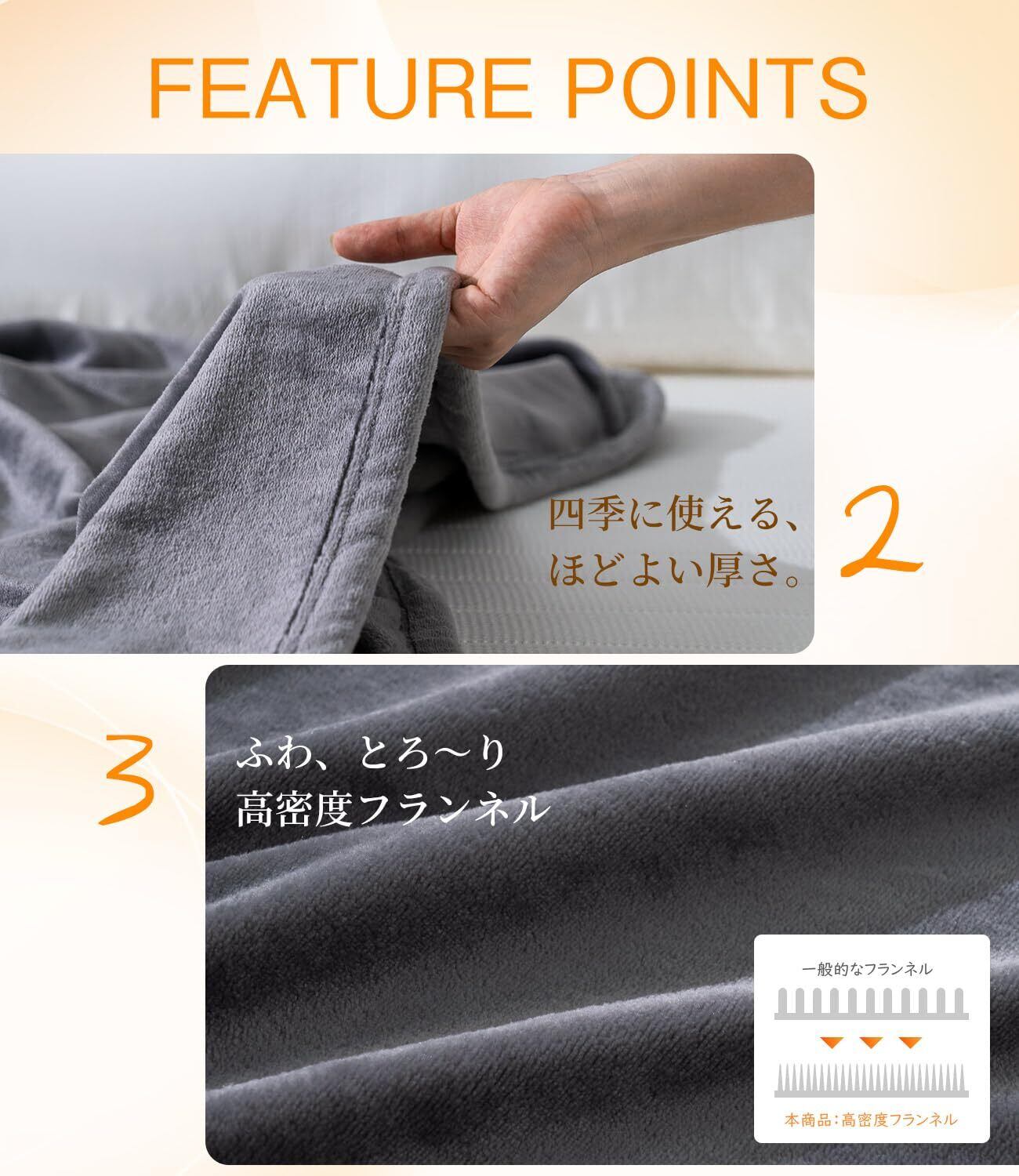 【軽やかな高密度フランネル】高密度で織り上げたフランネル素材を採用。“熱”を逃しにくく、包み込まれる暖かさを提供します。軽くて、あったかい。冬には掛け布団と併用して暖かさを保ちながら、心地よいモコモコ感を実感できる!