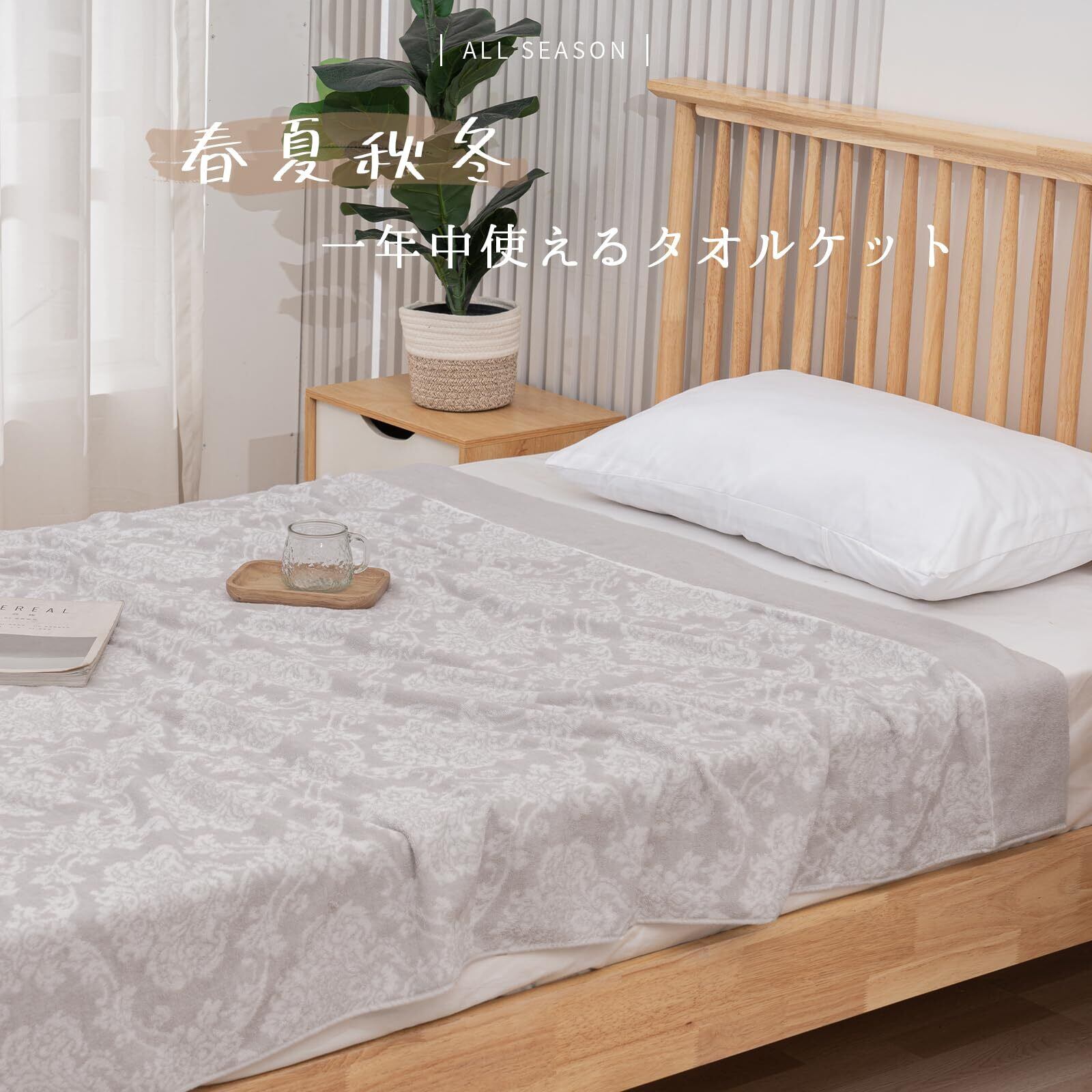 【特価セール】SE タオルケット シングル 夏用 ブランケット 綿100% おしゃれ 柔らかい ふんわり 吸湿速乾 抗菌防臭 洗える オールシーズン快適 140cmx200cm (からくさ·グレー) 「SE Softexly」