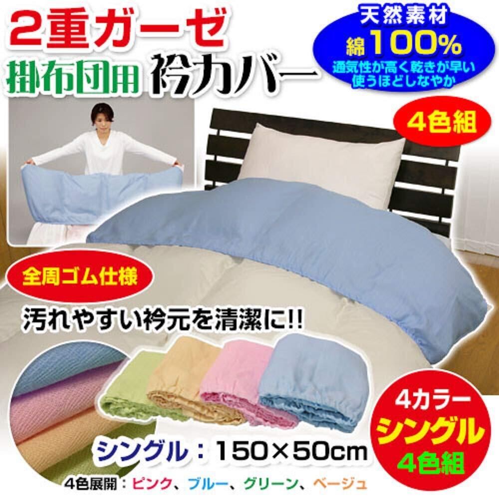掛け布団用 衿カバー シングルサイズ用 150×50cm メーカー直販 2重ガーゼ 衿カバー シングル 全周ゴム付き 4色組