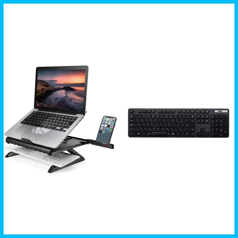 【キーボードセット】エレコム ノートPCスタンド 折りたたみ 8段階 9.5cm高さアップ脚 スマホスタンド付 ~15.6インチノートPC対応 ブラック PCA-LTSH8BK