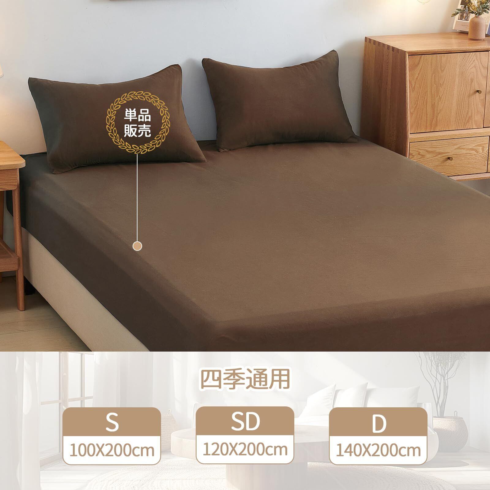 【在庫処分】HOdo Home ボックスシーツ シングル 吸水速乾シーツ ベッドカバー ピーチスキン加工 柔らかな触感(ブラウン・100×200cm)