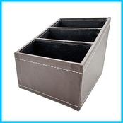 【在庫処分】収納ボックス 収納ケース 卓上収納ラック 文具収納 リモコン収納 スマホ 小物入れ 整理ボックス PUレザー オフィス用品 リビング用品 インテリア 雑貨 3格仕切り (ブラウン)