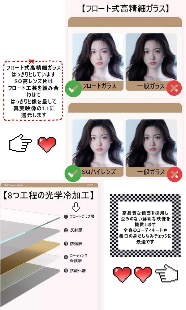 以上のように、様々な魅力的な特徴や売り点を備えています。この姿見鏡を是非ご利用いただき、快適な生活をお楽しみください。