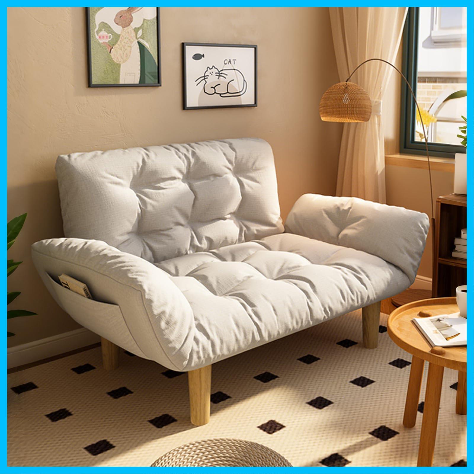 【人気商品】コンパクトソファ 2人掛け 肘付き 天然木脚 幅110-150cm ロボット掃除機も通れる かんたん組立 1人用にも 簡単組み立て 3WAY おしゃれ 新生活 北欧スタイル ソファベッド クッションが1個付属しています 浅いグレー